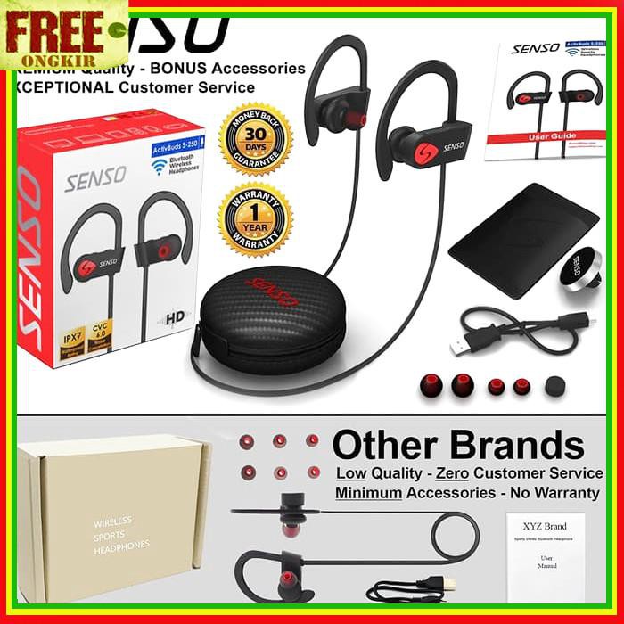 Garansi Murah Senso Bluetooth Wireless Sport Earphone Mic Ipx7